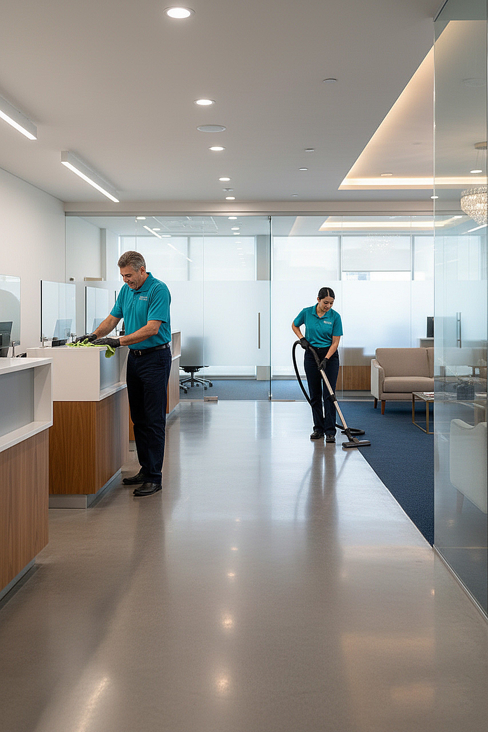 We clean lobbies, teller stations, offices, restrooms, and common areas using low-odor products and quiet equipment—maintaining a professional atmosphere at all times.