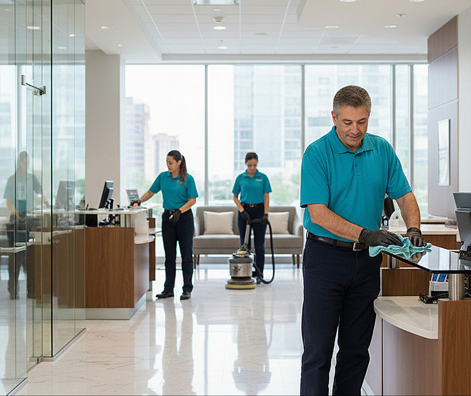 Our teams deliver commercial cleaning for banks and financial office janitorial services with a focus on security awareness, low-profile service, and consistent results. We clean quietly, follow controlled access protocols, and work around business hours to maintain a polished, professional environment at all times.