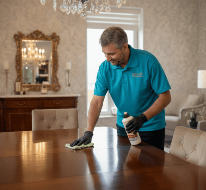 From polished stone to custom woodwork, our cleaners work methodically using safe, non-abrasive products—leaving no streaks, no scents, and no disruption.